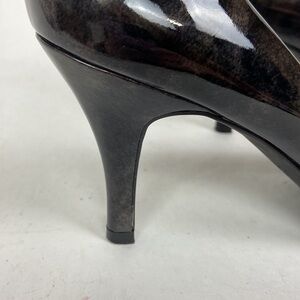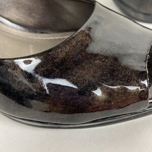 Excellent Condition Alex Marie Cashmere Pansy Grey Patent Leather Stiletto Peep Toe Heel Pumps