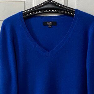 Alex Marie Cashmere Sz L Women's Cobalt Blue Sweater Pullover V-Neck