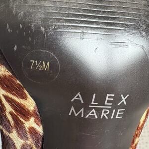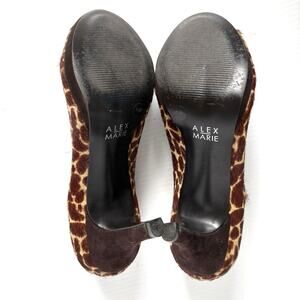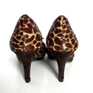 Alex Marie Cheetah Peep Toe Heels Pumps Brown Animal Calf Hair Bow Women’s 7.5