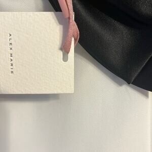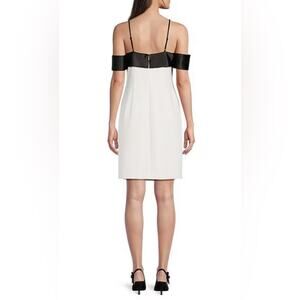 Alex Marie Cleo Black and White Block Off-The-Shoulder Bow Satin Mini Dress Sz 6