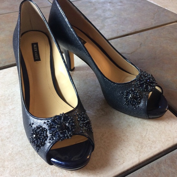 Gia in Marine Blue, beaded detail heals. No scuffs at all, worn twice inside. Original box.