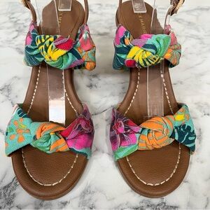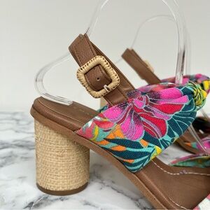 Alex Marie Colorful Floral Haonny Knotted Sandals Rattan Block Heels 9.5