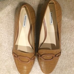 Elegant and confortable beige loafers by Alex Marie. Perfect for the office, jean, cocktails or any occasion. 3/4" heels - Size 8.