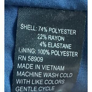 The look of fabric is has a dark blue denim look to it. See video. Such a beautiful dress for the office or dinner out!