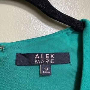 Classy Alex Marie dress in a size 10. Emerald green with gold zipper detail. Zip up back, has stretch and back slit for easy movement and comfort. Fully lined.