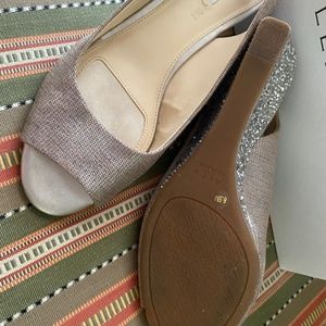Alex Marie Gold Peep Toe Rhinestone Wedge Sandals Size 8.5