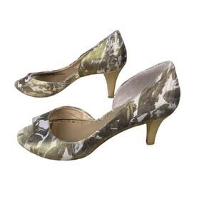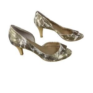 Alex Marie Gold and Cream Print Peep-toe 3" heels- Size 8.5