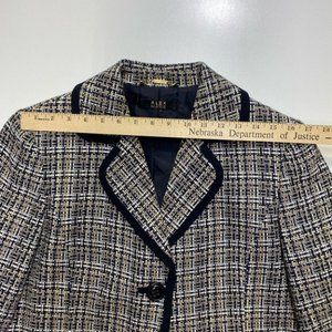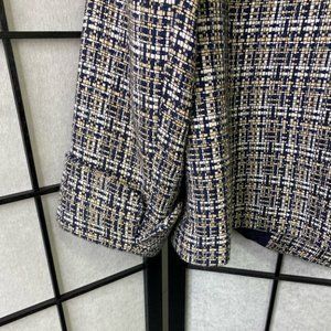 Navy tweed Alex Marie jacket blazer. Listing as a medium but size tag has been removed so please see measurements in the photos. 3/4 length sleeves and back pleat. In EUC!