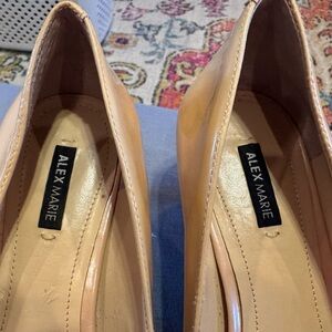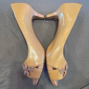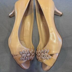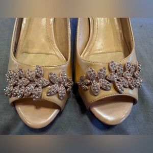 Alex Marie Jeweled Beaded Rhinestone Peep Toe Nude Beige Pump Heel Shoe Sz 7.5