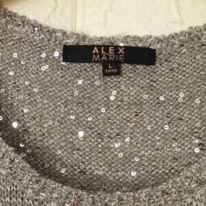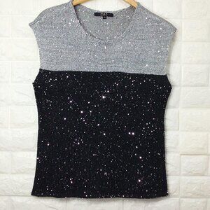 Alex Marie Knit Sweater Vest Lady-L Metallic Sequins Black Silver Gray Colorbloc