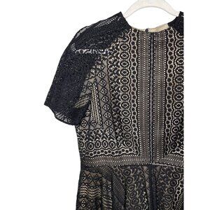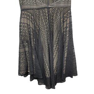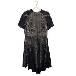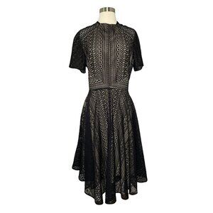 Alex Marie Lace A-line Dress in Black Short Sleeve Handkerchief Skirt Size 12