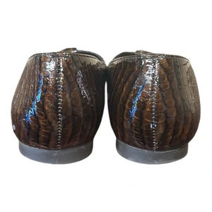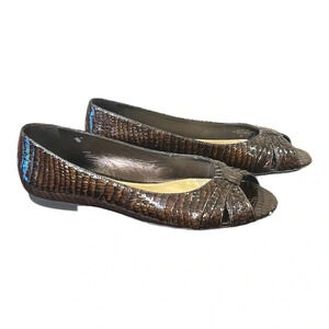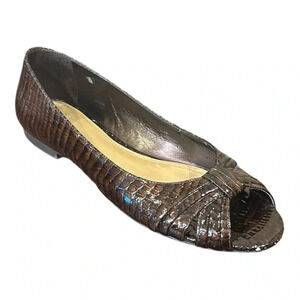 Alex Marie Leather Croc Embossed Open Toe Flats Brown Size 8