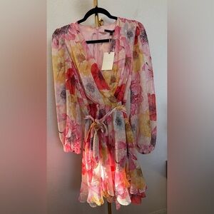 Chic floral dress with wrap design. Long sleeves add elegance. Perfect for any event.