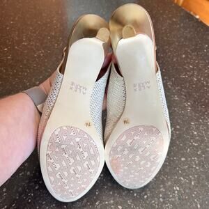 Alex Marie Marla Rhinestone Beaded Gold Pump Heel Shoe Women's Size 7 Sandal