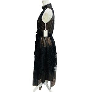 Alex Marie NWT Petite Joelle Black Mesh/Lace Embroidered Halter Dress 4 Petite