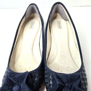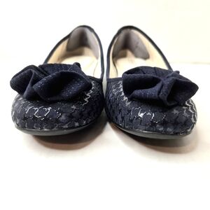 Alex Marie, navy blue suede loafers. Beautiful leather fabric upper and man-made sole loafers have patent leather trim. The interior offers super soft cushioning and support. Size 9M.