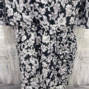 Alex Marie Plus Black White Floral Short Flutter Sleeve Dress V Neck