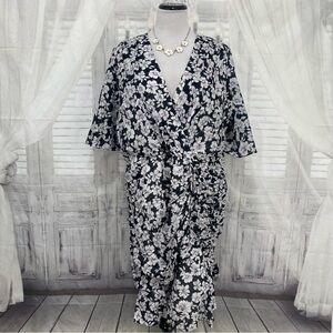 Alex Marie Plus Black White Floral Flutter Short Sleeve Dress V Neck Cotton NEW