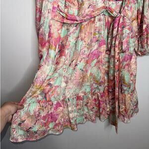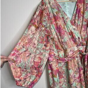Alex Marie Plus Size Floral Wrap Dress Pink Green 20W Wedding Guest
