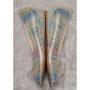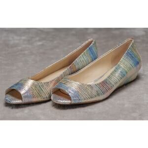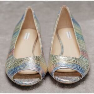Alex Marie Rainbow Gold Metallic Peep Toe Wedges Womens Size 8 NEW