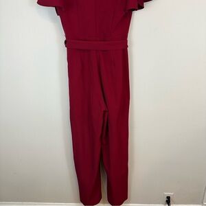 Excellent condition red jumpsuit. Flutter sleeves. Nice material and great for a work event, formal, or cocktail event.