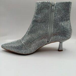 Step out in style with these elegant silver rhinestone ankle boots with kitten heel. Perfect for adding a touch of glamour to any outfit.