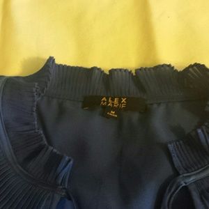 Great work blouse with beautiful ruffle neck detail with ties to make a keyhole in a beautiful shade of royal blue. Excellent condition!