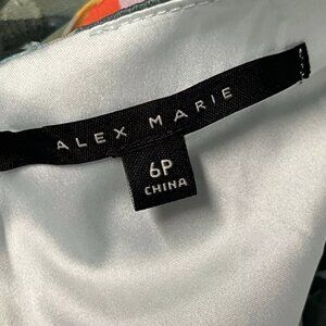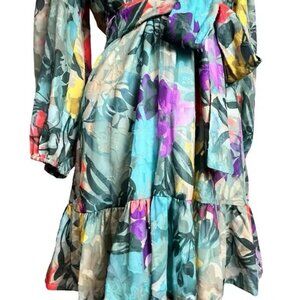 Alex Marie Ruffle Dress 6P Petites Floral Sheer Chiffon V-Neck Puff Sleeve Tier