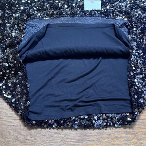Alex Marie Sequined Blouse Stretch Short Sleeve Lined Party Top Black Womens XL