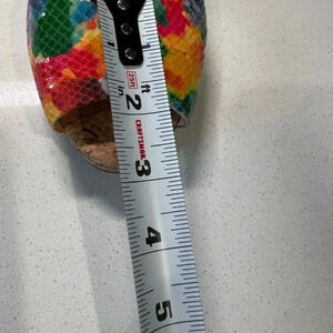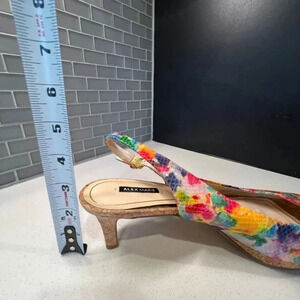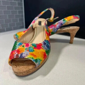 Gently worn Alex Marie open-toe slingback heels in size 10 with a 2" heel. These multicolor shoes are versatile.