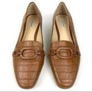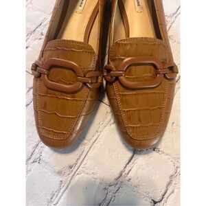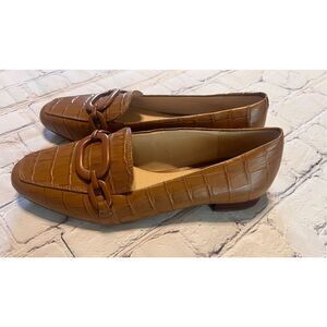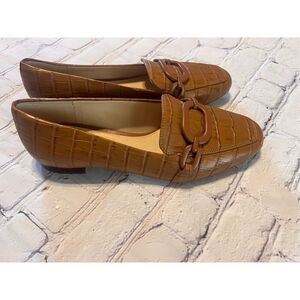 Alex Marie Size 6 Croc Embossed Loafers Light Brown Chain Front Old Money Preppy
