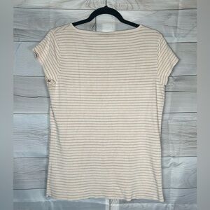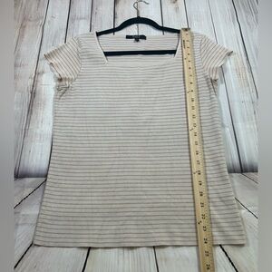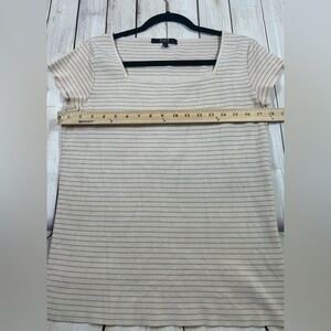Alex Marie Square Neckline, Cream/Stripe, Ribbed Sweater. Size Large.