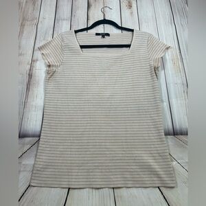 Alex Marie Square Neckline, Cream/Stripe, Ribbed Sweater. Size Large.