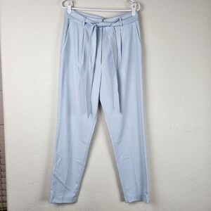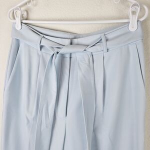 Elevate your style with these chic light blue tie-waist pants. Perfect for any occasion, these pants offer both comfort and elegance.
