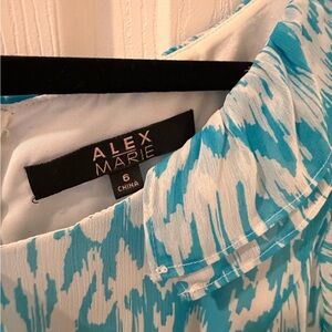 Alex Marie Turquoise & White One-Shoulder Ruffle Dress
