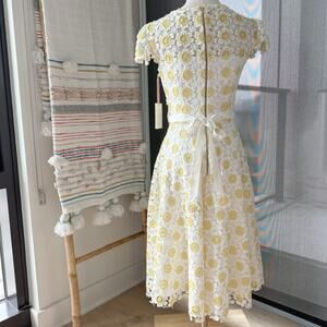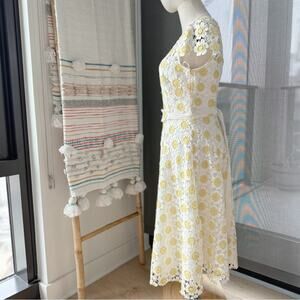 Alex Marie White Yellow Floral Shirt Sleeves Midi Dress Women’s Size 2