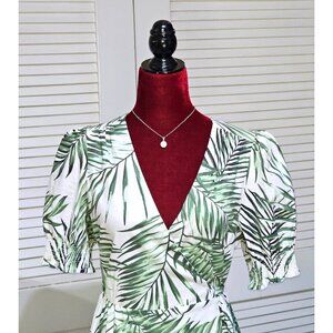 Alex Marie Women's Ashlyn Wrap Palm Paradise Print Linen Blend Dress Sz 8 2793