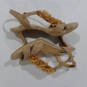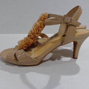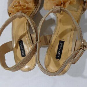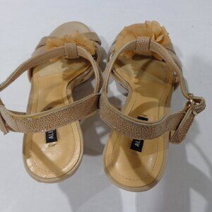 Alex Marie Women's Beige Leather Floral Ruffle Beaded Open Toe Sandals Size 8M
