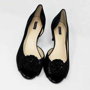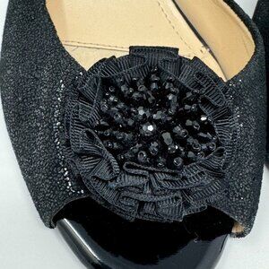 Alex Marie Womens Black Texture Leather Beaded Floral Formal Peptone Pump Sz 9.5