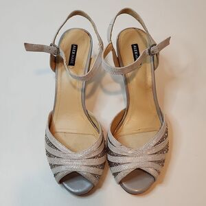 Alex Marie Women’s Silver Metallic Size 8M Peep Toe Slingback Heels Shoes