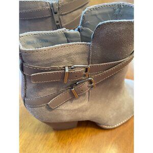 Alex Marie Women's Suede Ankle Boots With Stacked Heel Buckle Straps - Size 7.5