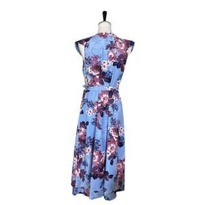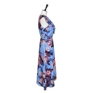 Alex Marie Wrap Dress Midi Ruffle Top Sleeveless Blue Pink Floral Women’s Size 6