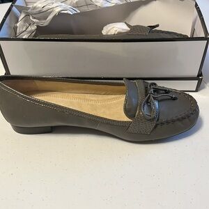 Alex Marie gray flats. Bow embellishments. New in box . Never worn . Size 8 1/2