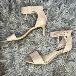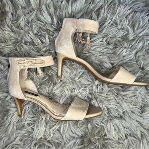 Alex Marie nude suede short heel bow & tassel sandals women’s shoe size 8