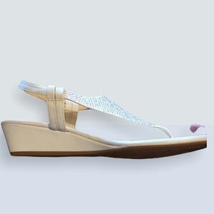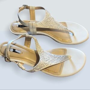 Alex Marie white rhinestone strappy wedge sandal. Size 9