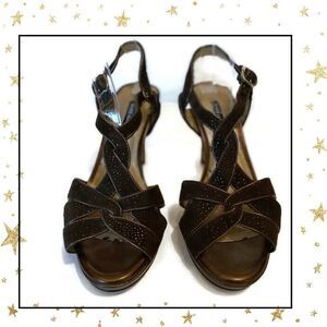 Cute! pair of Alex Marie brown, suede leather, sparkle, platform heels.