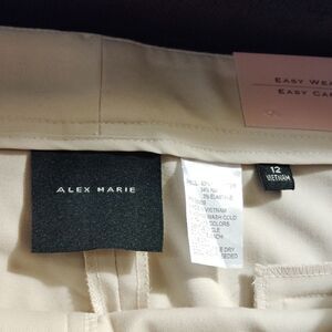 Experience timeless sophistication with these Alex Marie tan straight leg pants. Featuring a high-rise waist and a clean, structured silhouette, they are perfect for business or formal occasions. The neutral tone and pressed center creases add a touch of elegance to any ensemble.nwt