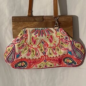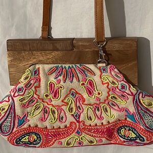 Alex Max Free Spirit Wood Frame Bright Beaded Patterned Crossbody Bag