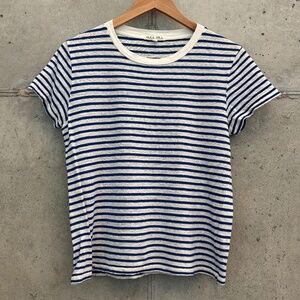 Alex Mill Blue and White Prospect Tee in Stripe, Linen Blend, Size Large