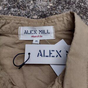 NWT Alex Mill “Bobby” Wash & Go Shirt in a timeless khaki tan. Women’s size Medium. Made with 100% BCI cotton for breathable comfort and easy everyday wear. Features a relaxed fit, long sleeves, point collar, and chest pocket. Minimalist design that transitions effortlessly from workday to weekend.